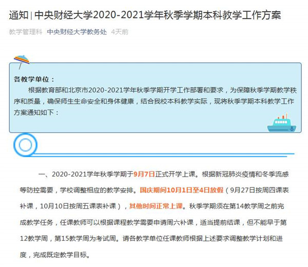 教育部 全国中小学 托幼机构和高校安排在8月15日到10月10日开学 防控