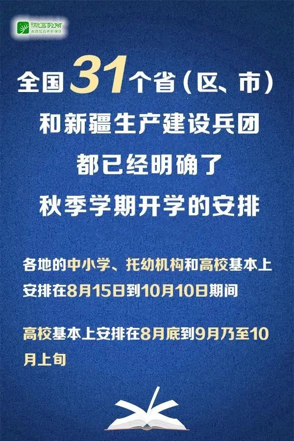 教育部 全国中小学 托幼机构和高校安排在8月15日到10月10日开学 特别关注 防控